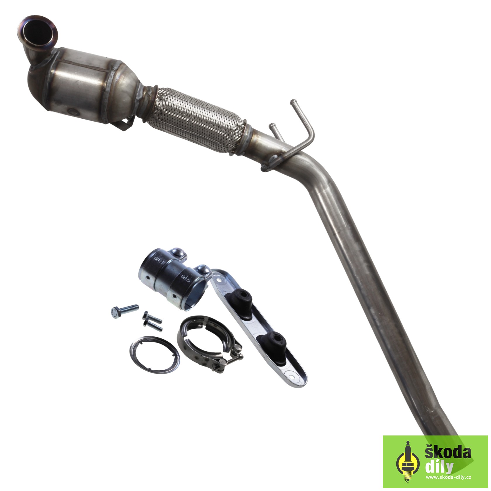 exhaust, 1st part with catalytic converter, intended for vehicles with front-wheel drive and 1.9TDI 77kW (BXE, BJB, BKC), 2.0TDI 100kW/103kW (BKD, AZV) engines, with mounting accessories (2x buckles, 1x seal)