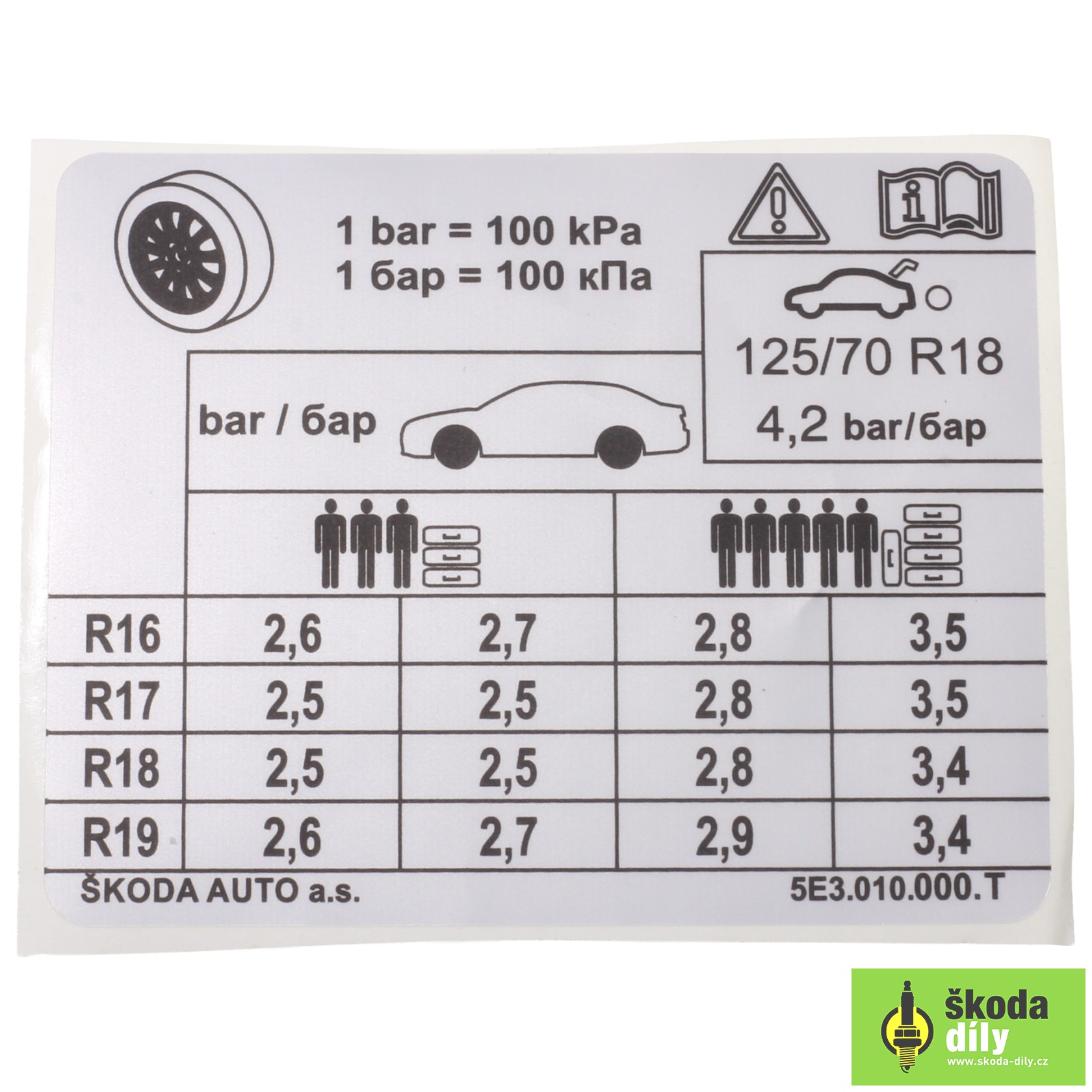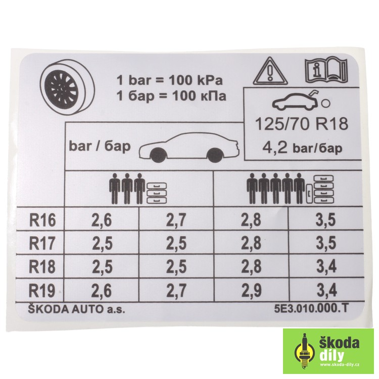 Tire Pressure Label Škoda | Skoda-Parts.com