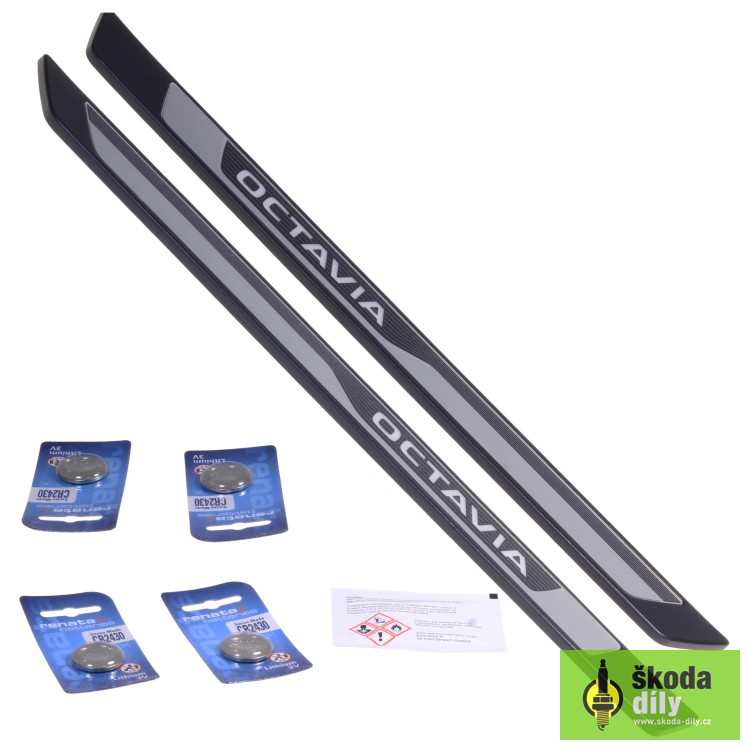 Set of 2 illuminated decorative door sill scuff plate with inscription "Octavia". Protect the door sill from being damaged by the boots of passengers when getting on and off.