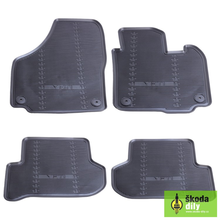 Set of 4 rubber floor mats for the Škoda Yeti car, ideal for winter use, perfectly fitting carpets with fixation holes for firm attachment.