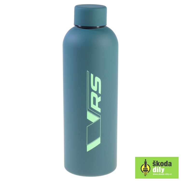 Thermos bottle in emerald green with the inscription "ŠKODA Motorsport" on one side and "VRS" on the other.