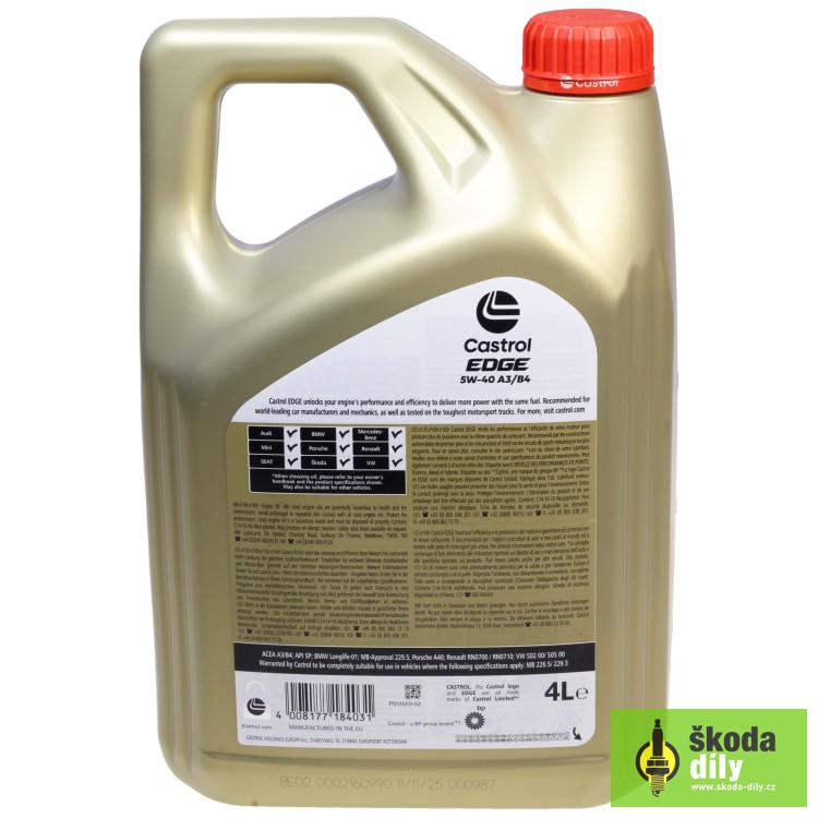 CASTROL EDGE 5W-40 A3B4 Engine Oil Europen Union - OE producer | Skoda-Parts.com